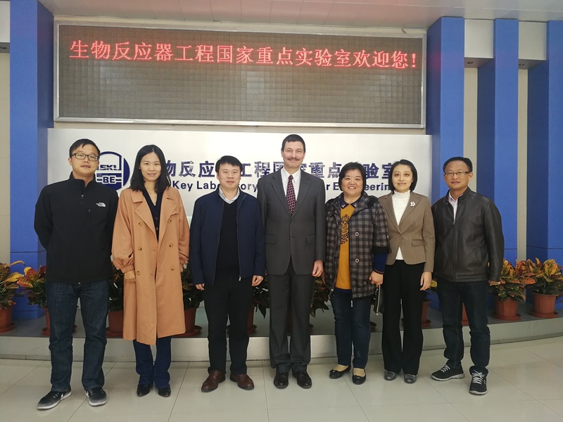 Mr. Jürgen Wendland, a Professor University Libre of Brussels, Belgium and Editor-in-chief of Microbiological Research, was invited to pay a visit to the State Key Laboratory of Bioreactor Engineering, ECUST for academic exchange on November 15th, 2017. Accompanied by Professor Zhuang Yingping, Dean of the School of Bioengineering, Professor Wang Qiyao, Deputy Dean of the School of Bioengineering, and Professor Xie Jingli, Deputy Director of the State Key Laboratory, Professor Jürgen Wendland visited State Key Laboratory of Biological Engineering in the morning of November 15 and he gave an academic report entitled The biology of Ashbyagossypii: ecology, genomics, growth, development and sporulation after his visit. The report meeting was presided over by Professor Wang Qiyao and witnessed a heated discussion between the present audience and Professor Jürgen Wendland.
