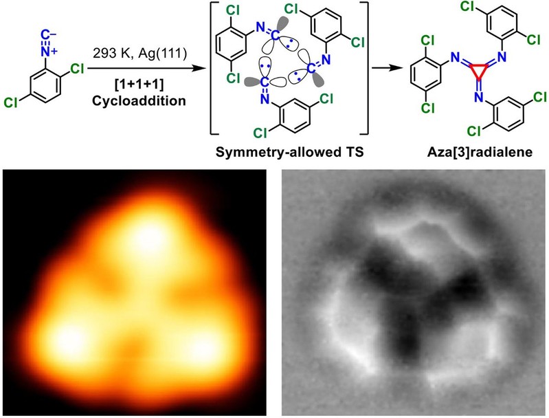 The research was financially supported by the National Natural Science Foundation of China, the National Fund for Distinguished Young Scholars. Cooperated with the team of Researcher Qiu Xiaohui/Associate Research Fellow Liu Mengxi of National Nanocenter and the team of Professor Shi Xingqiang of Hebei University, the team of Professor Liu Peinian/Associate Professor Li Dengyuan developed the [1+1+1] cycloaddition reaction with high selectivity to generate three-membered carbocyclic rings in one step, which took the lead in realizing the directional transformation of isonitrile precursor molecules to azatrienes.