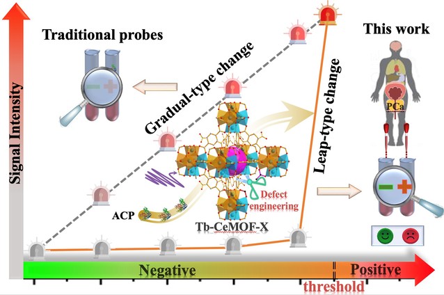 Recently, the team of Professor Li Yongsheng from the College of Materials Science and Engineering, ECUST has made new progress in the design and synthesis of high-performance fluorescent diagnostic probes. The research article was published online in Angwandte Chemie International Edition with the title “Leap-type response of redox/photo-active blueprint-based metal-organic frameworks for early and accurate screening of prostrate cancer”.